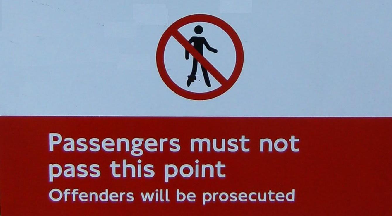 ‘Passengers must not pass this point’.